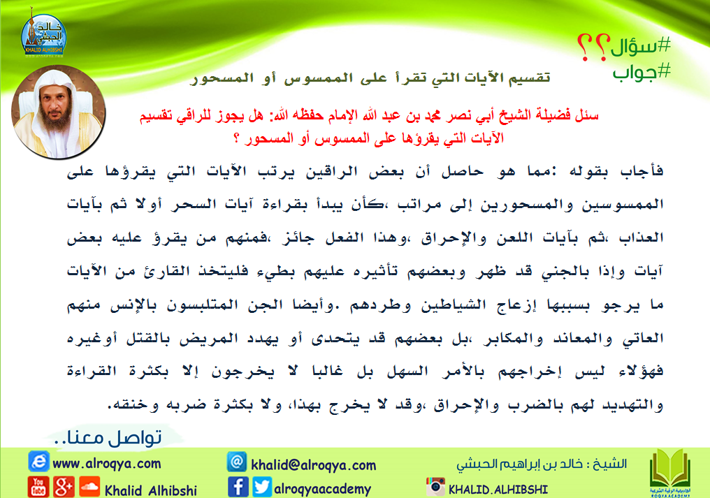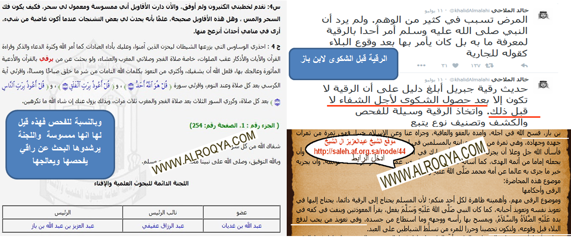 كم حذرنا ونبهنا على عدم نقل ومتابعة تغريدات في الرقية الشرعية من غير مواقع مختصة بهذا العلم وتغريداتها مفيدة وصحيحة مع أننا نحب ونحث على نشر هذا العلم العظيم ولكن كم ضاع من المتابعين والمرضى لمثل تلك التغريدات الخاطئة أو التي هي نسخ ولصق مثله مثل من نقل حديثا منسوخا ويستدل به ولا ولم يعرف او يذكر الناسخ له وهذا مثال لبعض تغريدات تويتر ونشرتها بعد نصحي لصاحبها ان يكون على الخاص فأصر أن تكون على العام ليستفيد الناس وبالفعل هذا الصحيح لأن تغريداته انتشرت ولا يكفي الخاص الا اذا اقتنع بالصحيح وحذف تغريداته وبين خطأه ومع ذلك لازال يغرد خطأ .. أسأل الله الهداية لي وللجميع